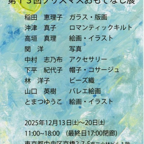 2025.12.13(土)〜12.20(土) AM11:00~PM6:00まで(最終日PM5:00まで)