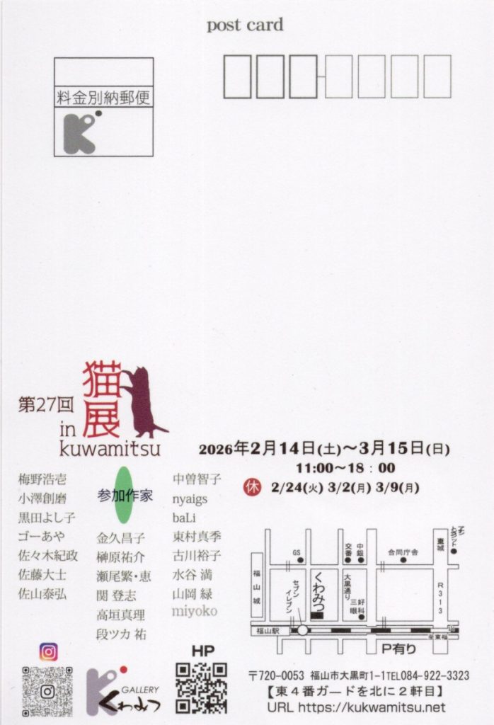 毎年、思いっきりは作品を出せない猫展ですが、久しぶりにポストカードと一筆箋を新しく作りました。半端でない猫パワーをもらえる展覧会です。ぜひ足をお運びください。