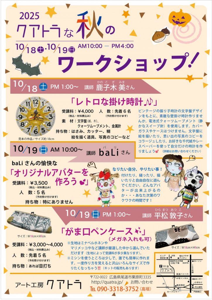 『クアトラな秋』来月10月18日(土)19日(日)10:00〜16:00まで開催します。